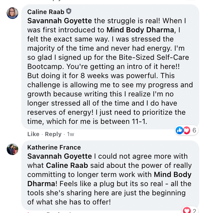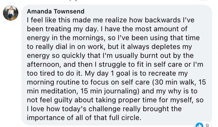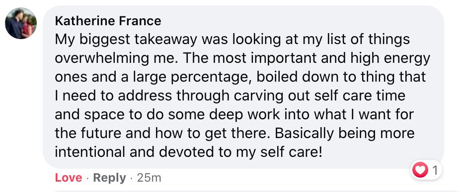 In fact, women who went through this exact same experience last year increased their ability to implement self-care by 70%.