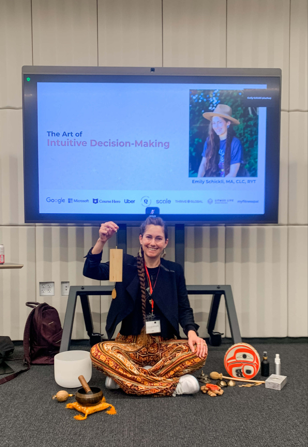 “Emily helped Googlers gain more clarity into their challenges and identify opportunities for greater wellbeing through her booth and interactive workshop on work-life balance at our Wellness Fair. Emily was a natural and her bright yellow booth stood out as a positive beacon, where she offered her signature and unique approach to card reading as personal development.