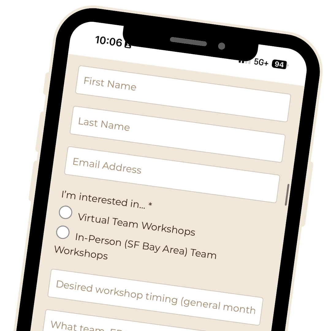 All workshops can be customized. Book a 60-90 minute experience, a half-day offsite, or even a series. Virtual and in-person options available. Emily is based in the SF Bay Area and is happy to travel.